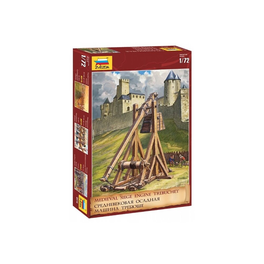 - Подробная комплектация комплект пластиковых деталей для сборки 1 модели осадной машины Требюше, инструкция по сборке