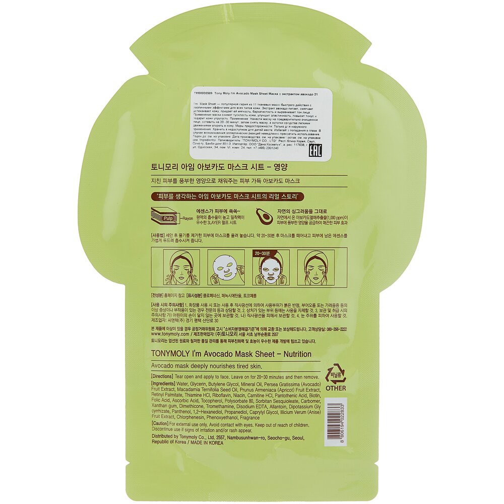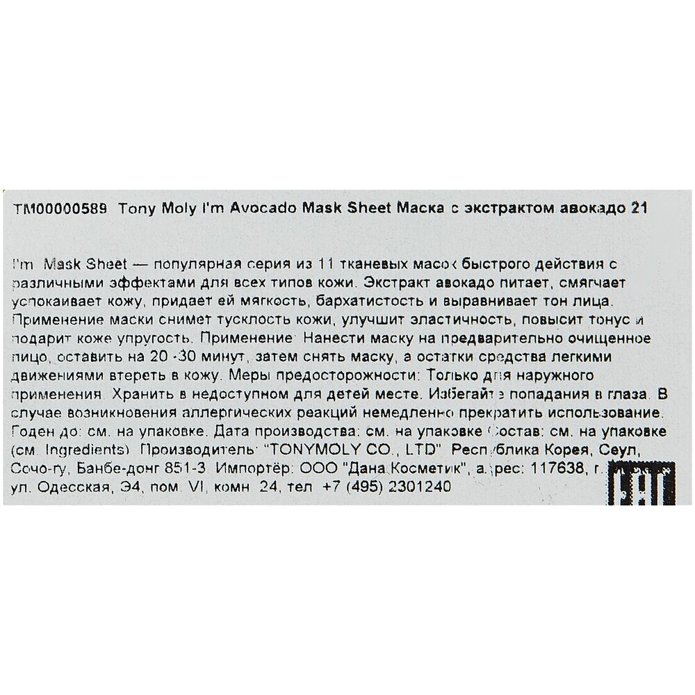 TONY MOLY тканевая маска I'm Avocado, 21 г