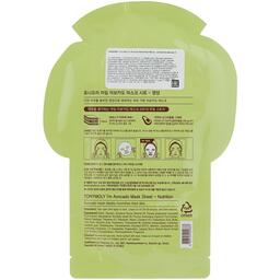 Экстракт авокадо питает, смягчает и успокаивает кожу, придает ей мягкость, бархатистость и выравнивает тон лица. Применение маски снимет тусклость кожи, улучшит эластичность, повысит тонус и подарит коже упругость.<br />Применение: Используйте маску только на очищенную кожу. Вскройте упаковку и расправьте лист по всей поверхности кожи лица. Оставьте маску на 20-30 минут. После, удалите маску и распределите остатки вещества массажными движениями.