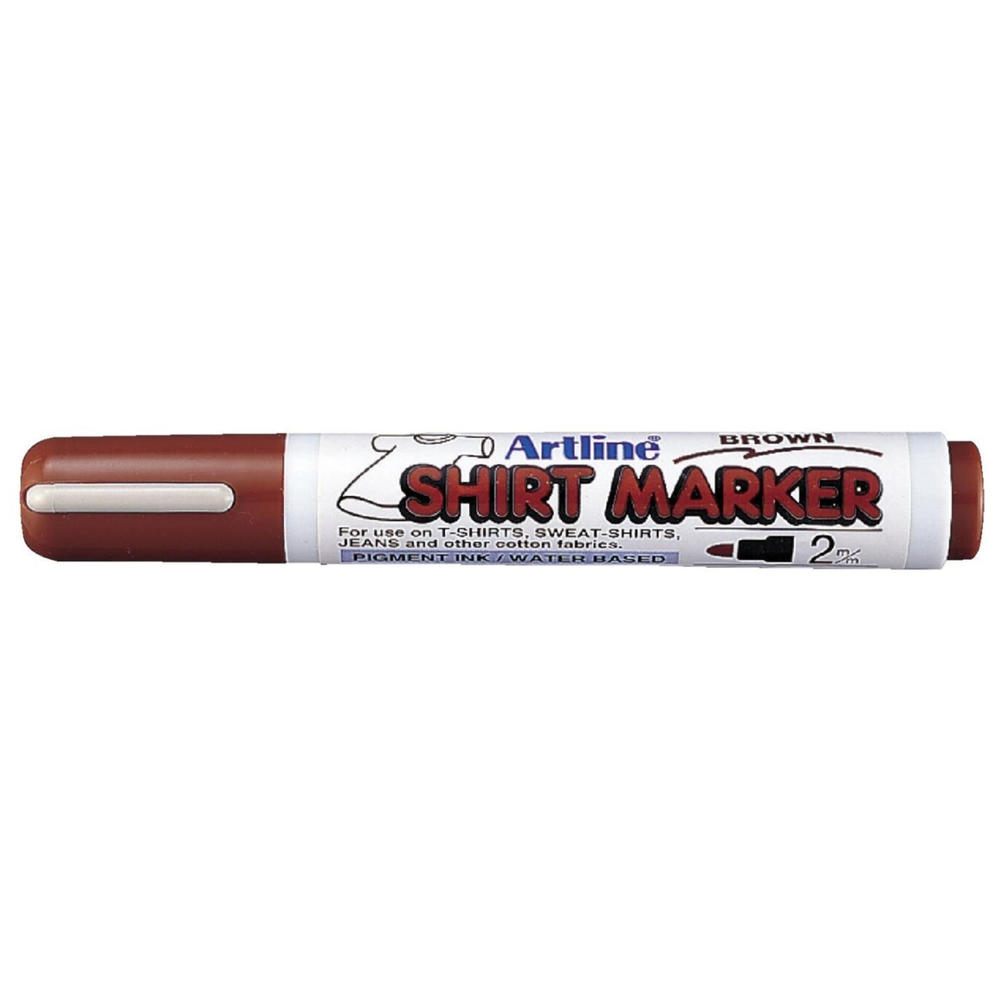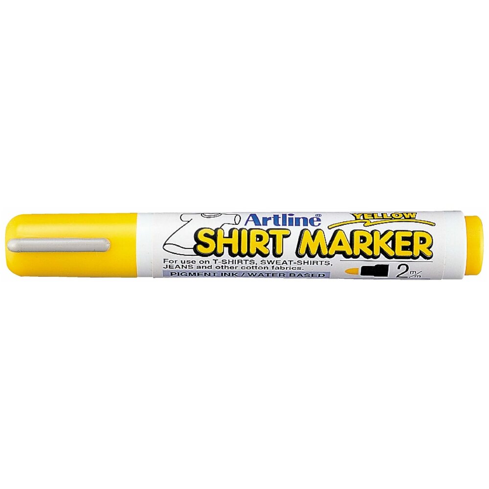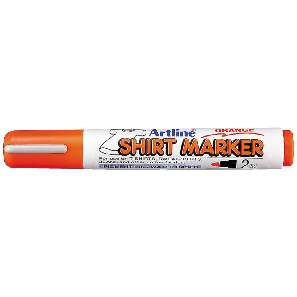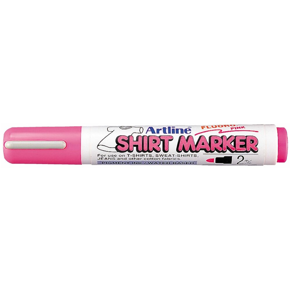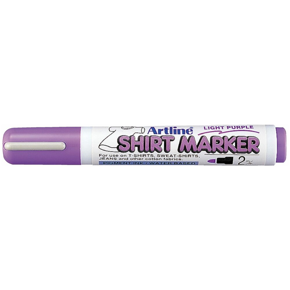 Маркер для ткани Artline T-shirt на основе пигментных чернил. Производство — Япония. Толщина наконечника — 2,0 мм. После нанесения и фиксации рисунок не выцветает на солнце, устойчив к стиркам до 60 градусов Цельсия включительно. Большой ассортимент ярких и плотных цветов: черный, синий, красный, зеленый, желто-зеленый, коричневый, оранжевый, фиолетовый, желтый, розовый, серый, флуоресцентный желтый, флуоресцентный оранжевый, флуоресцентный розовый, светло-фиолетовый, флуоресцентный зеленый, бежевый, голубой, светло-оранжевый. Флуоресцентные цвета не только обладают превосходной видимостью под солнечным светом, но и ярко светятся под воздействием УФ света (ночные клубы, УФ-лампы и т.д.). Инструкция по использованию на примере футболки: Продумайте дизайн и нанесите контур рисунка плотный лист; Вложите лист внутрь футболки так, чтобы контур просвечивал; Подогните края футболки так, чтобы на них случайно не попали чернила; Разгладьте область, на которую предполагается нанести рисунок; Тонкими линиями повторите на ткани просвечивающий контур одним из темных маркеров T-Shirt; Раскрасьте рисунок маркерами T-Shirt; Дополнительно обведите конктур, это придаст рисунку глубину и контраст; Достаньте лист с контуром из футболки и дайте чернилам высохнуть; Аккуратно прогладьте рисунок утюгом на средней мощности для фиксации цветов. В качестве контура Вы можете использовать: рисунок от руки, фото, вырезку из журнала и т.д..