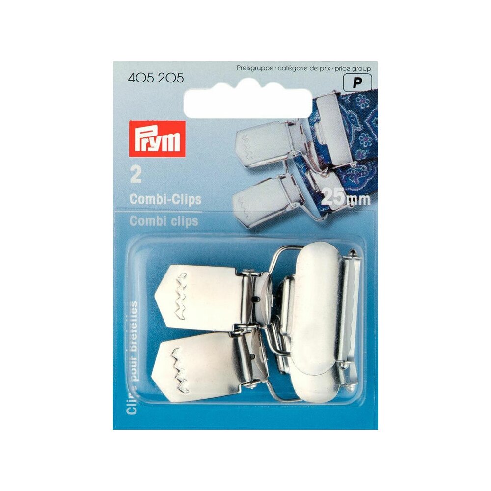 Зажимы д/подтяжек 405205 Зажимы д/подтяжек с пряжкой-клапаном, сталь, с защитой от коррозии, д/зажимания, 25мм, серебристый, 2шт в блистере, Прим
