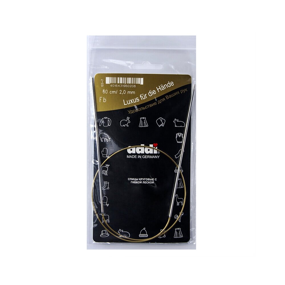 Спицы, круговые, супергладкие, никель, №2, 60 см. №2 ADDI 105-7/2-60