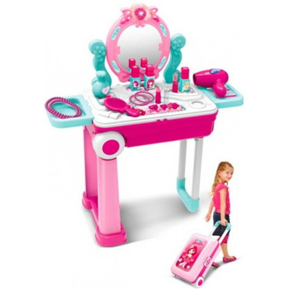 Интерактивный чемодан Xiong Cheng - это туалетный столик с 14 аксессуарами для правдоподобной игры, которая приведет в восторг вашего ребенка! Каждая девочка мечтает добраться до маминой косметики и уж точно ей просто необходимо занять место за туалетным столиком, чтобы как следует все испробовать и определиться с выбором как косметики, так и духов! Особенности: - У Вашей принцессы будет личный туалетный столик - чемодан с аксессуарами. - Игровой столик со всем необходимым позволит малышке придумать очень интересную игру. Можно перед зеркалом краситься или делать прически. - Преимуществом данного игрового набора является то, что трюмо легко складывается в чемодан, который можно брать с собой в дорогу, чтобы не расставаться с любимой игрушкой. - Красивый дизайн поможет девочке перенестись в сказочный мир и почувствовать себя принцессой.