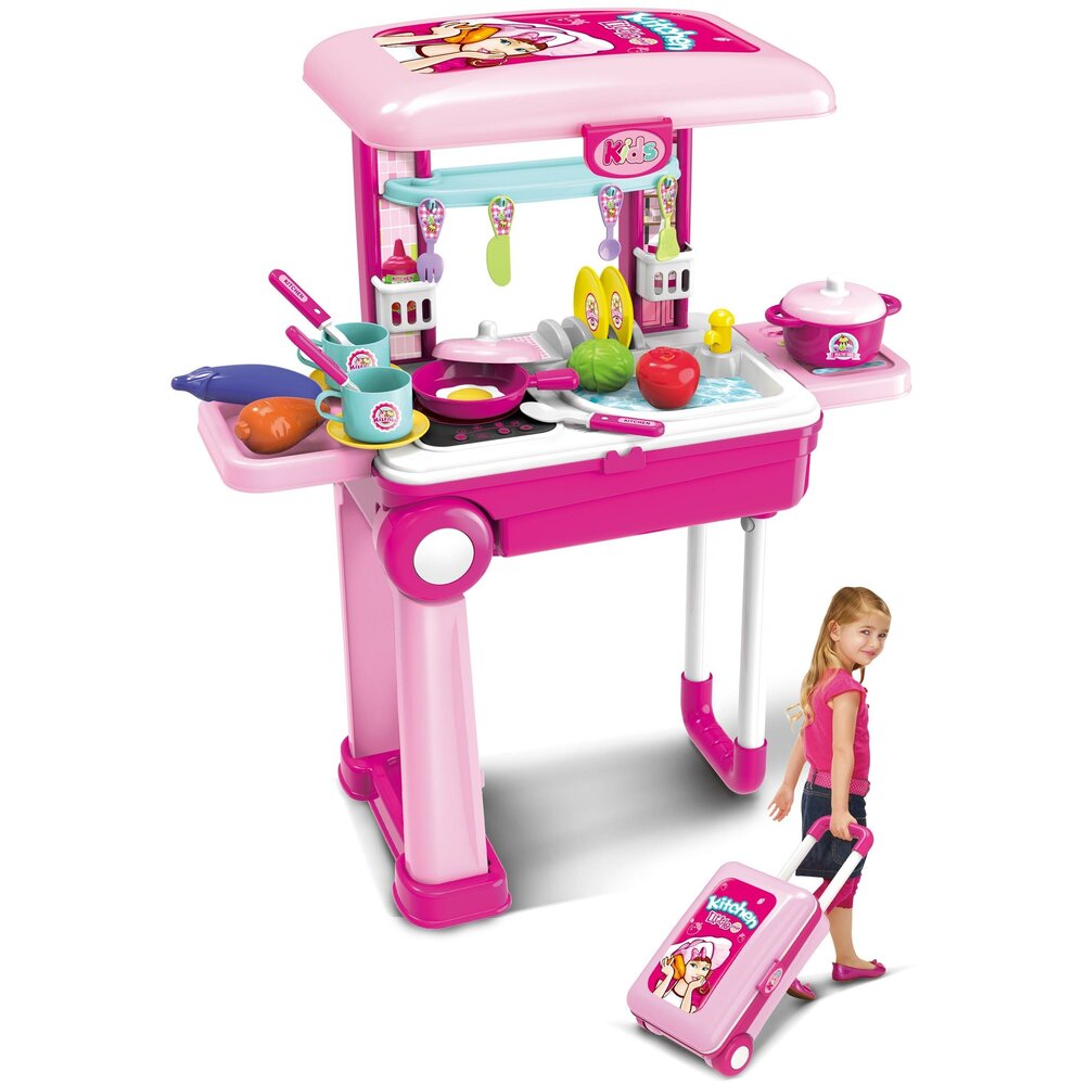 Интерактивный чемодан Xiong Cheng - это игровая кухня с 20 аксессуарами для правдоподобной игры, которая приведет в восторг вашего ребенка! На кухне ребенок почувствует себя шеф-поваром, усвоит принципы готовки и вскоре сможет помогать маме на настоящей кухне. Особенности: - Детская кухня позволит ребенку приобрести в процессе игры навыки готовки и познакомиться с принципами работы бытовой кухонной техники. - Выполнена детская кухня из качественного и прочного пластика, все углы закруглены. - Рабочая зона представлена плитой с 1 конфоркой, раковиной с краном и боковыми подставками. - Над раковиной и плитой находится полочка с крючками для навески. - Компактный размер позволяет легко разместить кухню даже в небольшой игровой комнате. - На игровой кухне дети смогут придумать много интересных сюжетов, имитируя процесс готовки. - Для того чтобы игровой процесс был более реалистичным в комплекте предусмотрена посуда и муляжи продуктов. - Игра способствует развитию мышления, логики, ловкости, памяти, координации движений и моторики, дарит новые положительные эмоции. - Изделие поставляется в красочно оформленном кейсе, что обеспечит дополнительную мобильность и станет незаменимым решением для родителей при транспортировке.