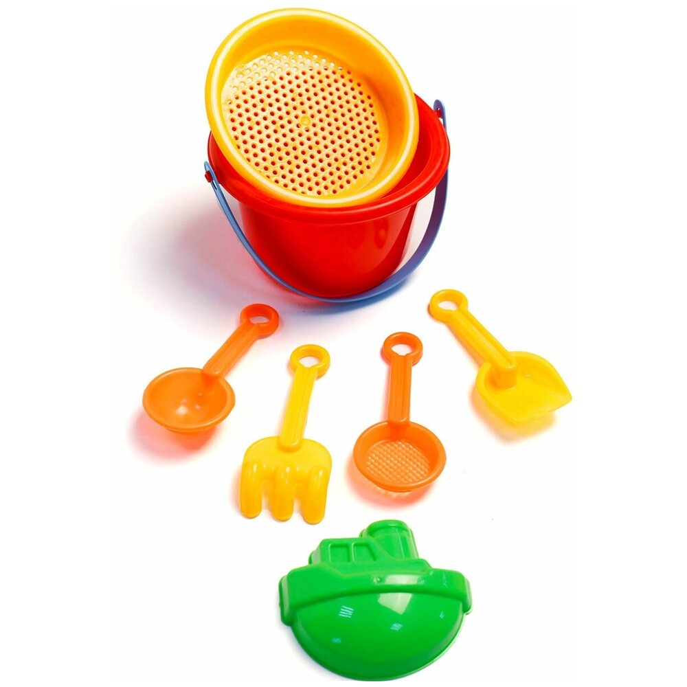 Набор № 681: ведро, совок, лопата, грабли, ложка, сито, две пасочки, арт. 817035