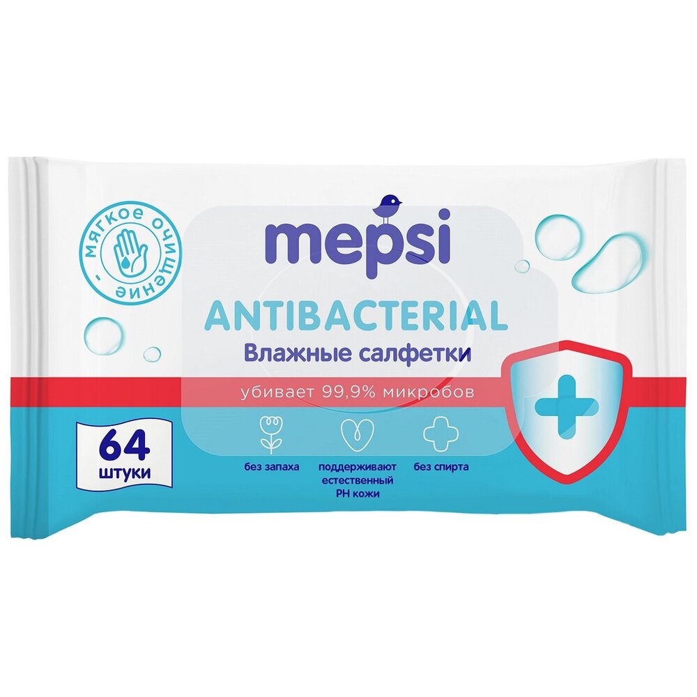 Влажные антибактериальные салфетки Mepsi, 64 шт.
