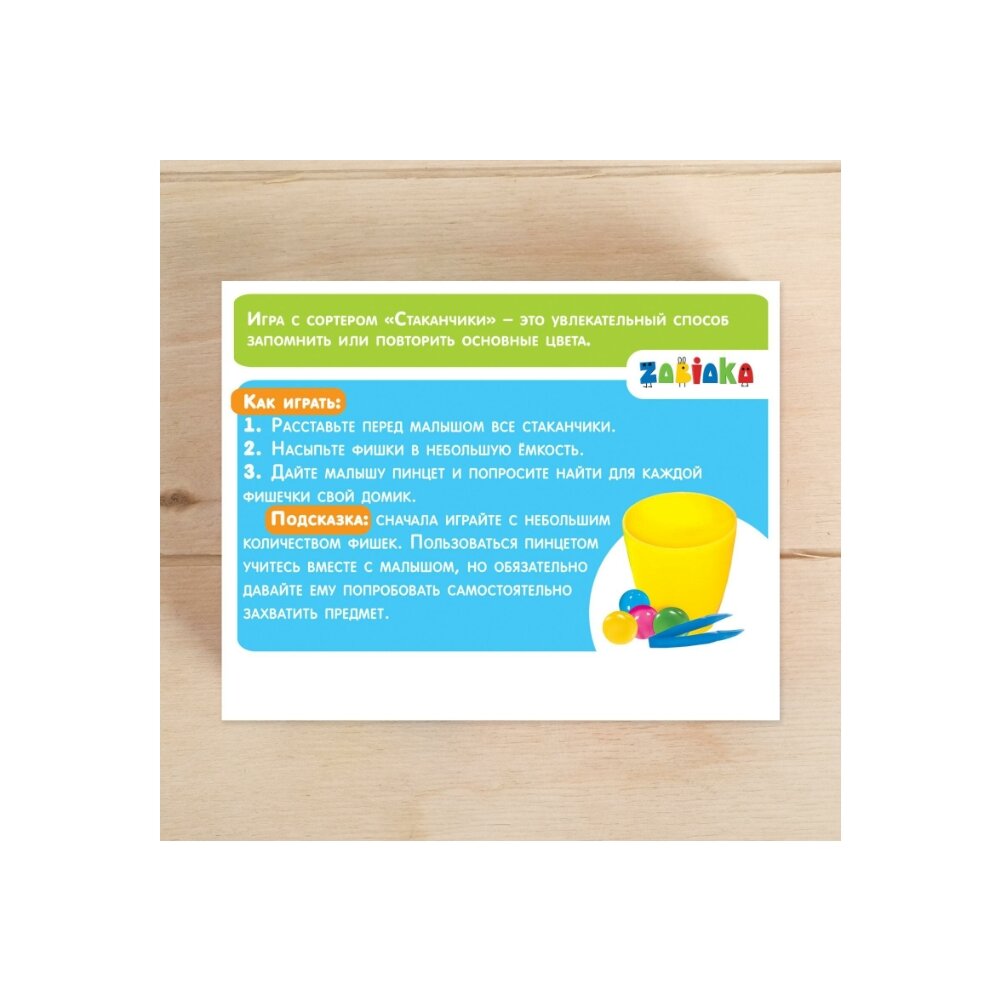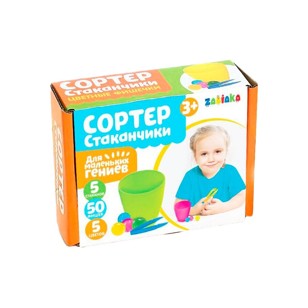 ZABIAKA Набор для сортировки "Сортер стаканчики. Цветные фишечки" с пинцетом 3970865