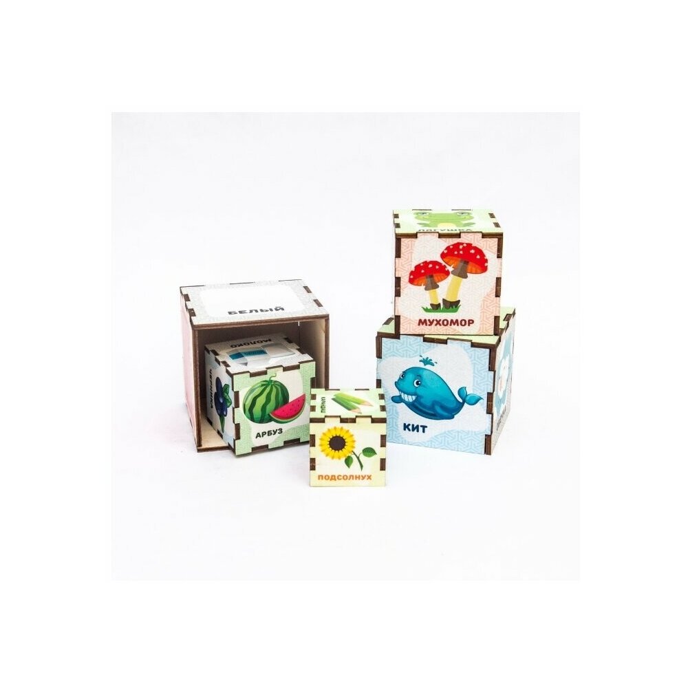 Сортер-пирамидка— это удивительная развивающая игрушка для любопытных малышей. Игрушка представляет собой набор из 5 деревянных кубиков разного размера с тематическими изображениями. Кубики интересно вкладывать друг в друга по принципу матрешки или стоить из них башни. Игры с Сортер-пирамидкой развивают логическое мышление, внимание, память, воображение, стимулируют мелкую моторику и координацию движения. Деревянные кубики Сортера-пирамидки имеют приятную на ощупь текстуру, развивают тактильное восприятие ребенка. Яркие тематические картинки игрушки привлекает внимание малыша, формирует познавательную активность, создают положительный эмоциональный фон, знакомят ребенка с основными геометрическими формами. Уникальная Сортер-пирамидка станет любимой игрушкой вашего непоседы. Размер: Большой кубик 85 мм грань, остальные каждый меньше на 10 мм