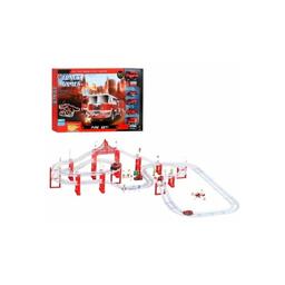 "Вместе с автотреком с большим выбором пожарных машинок для юного гонщика открывается множество новых способов спасения города от огня! Взаимозаменяемые элементы создают повороты, дороги и конфигурации для захватывающих маневров. Игрушка развивает моторику, воображение и фантазию. Все предметы в наборе выполнены из нетоксичного и безопасного для детского здоровья пластика. Для игры Вам потребуются батарейки: 2*AA, в набор не входят" Размер упаковки : 58*8*34,5