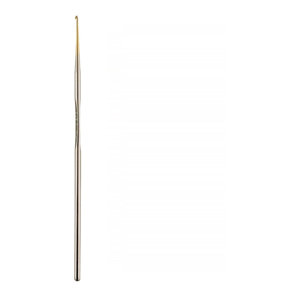 Серия тонких крючков с позолоченной головкой. Сделаны из прочной стали. Предназначенны для филигранного вязания кружева тонкой нитью. Позолоченная головка обеспечивает хорошее скольжение нити, а также позволяет отчетливо видеть петлю на крючке, что облегчает вязание тонкого полотна. Съемный пластиковый колпачок защищает головку крючка от повреждений и царапин.