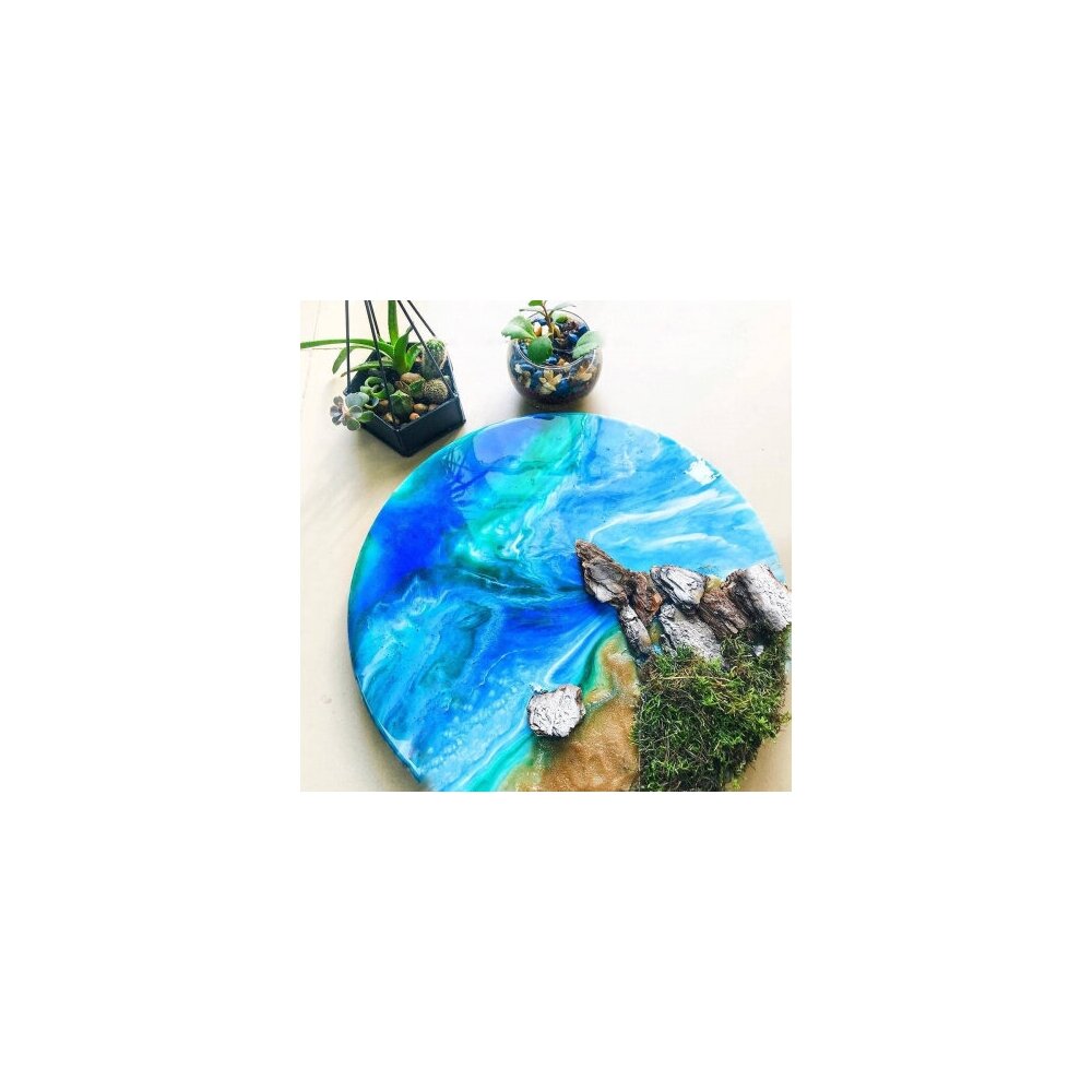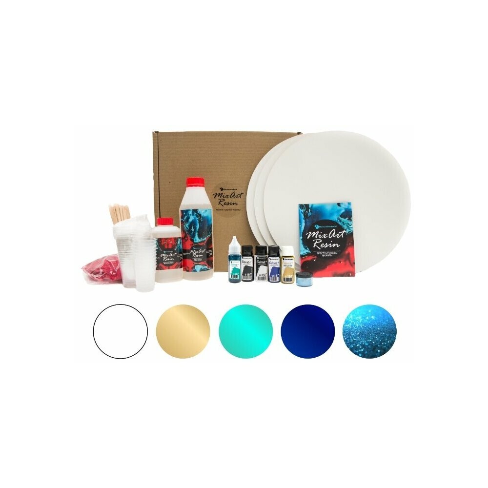 Подробная комплектацияНабор для рисования эпоксидной смолой в технике "Resin Art" MixArt Resin Box Морской берег - включает в себя всё что необходимо для рисования смолой с уже подобранной палитрой цветов. Просто и удобно творить! Набор включает: - Смола (500 г) + отвердитель (250 г) - Артборд односторонний, круглый, диаметр 30 см - 2 шт - Артборд односторонний, круглый, диаметр 20 см - 3 шт - Красители (15 г) - 4 шт (белый, песочный, морская волна, синий) - Глиттер лазурь 5 мл - Стаканчики 250 мл - 6 шт. - Стаканчики 30 мл - 10 шт. - Палочки для смешивания - 10 шт. - Нитриловые перчатки для работы со смолой - 4 пары - Защитный фартук для работы - 2 шт. - Инструкция - 1 шт. Смола для рисования MixArt Resin Прозрачное, устойчивое к УФ самовыравнивающееся покрытие, которое образует твердый и глянцевый защитный слой.