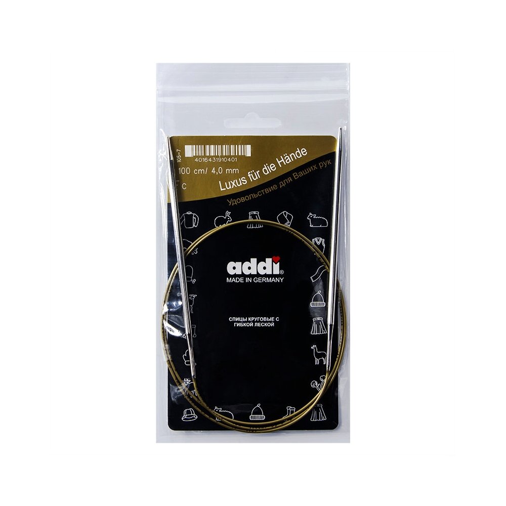 Спицы, круговые, супергладкие, никель, №4, 100 см. №4 ADDI 105-7/4-100