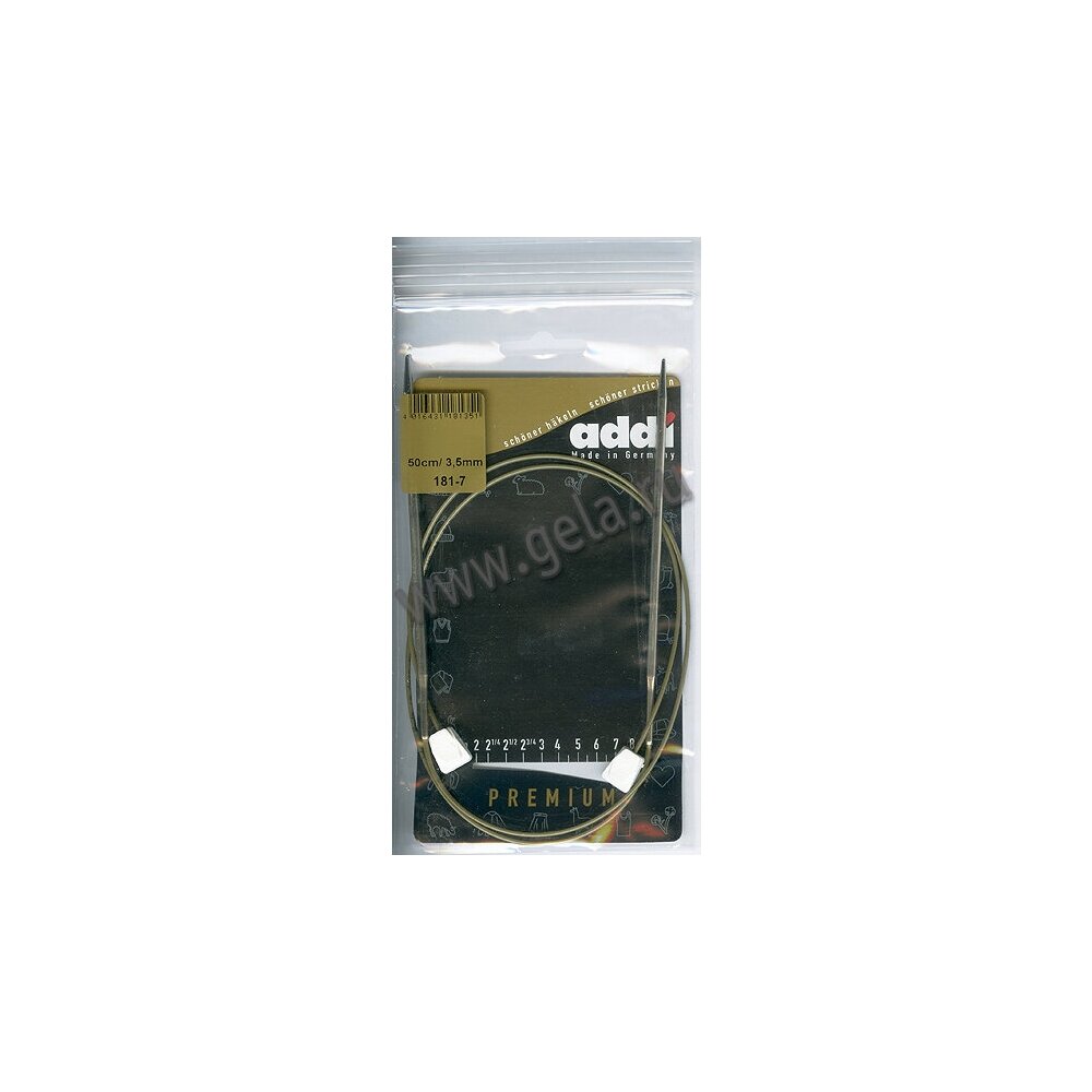 тива длинным прямым спицам, когда последние торчат в разные стороны при вязке. Достаточно длинная леска позволяет вязать широкое полотно. Фиксаторы из пластика не позволят полотну соскользнуть со спиц. Преимущества спиц на леске с фиксаторами фирмы ADDI: 1. идеальный переход пряжи со спицы на леску 2. глянцевые, идеально гладкие спицы 3. максимально облегченные материалы 4. размер и длина спиц указаны на леске, легко читаются, не стираются, не зацепляют нить 5. высококачественная гибкая леска, при работе не закручивается. 6. спицы Премиум-класса, произведены и упакованы в Германии. Производитель рекомендует: если леска на сухом воздухе потеряла гибкость – подержите леску несколько минут в теплой воде и вязание снова станет комфортным Аналог прямых спиц. Гибкость лески позволяет распределить вес изделия при вязании. Облегчает вязание больших, тяжелых вещей.