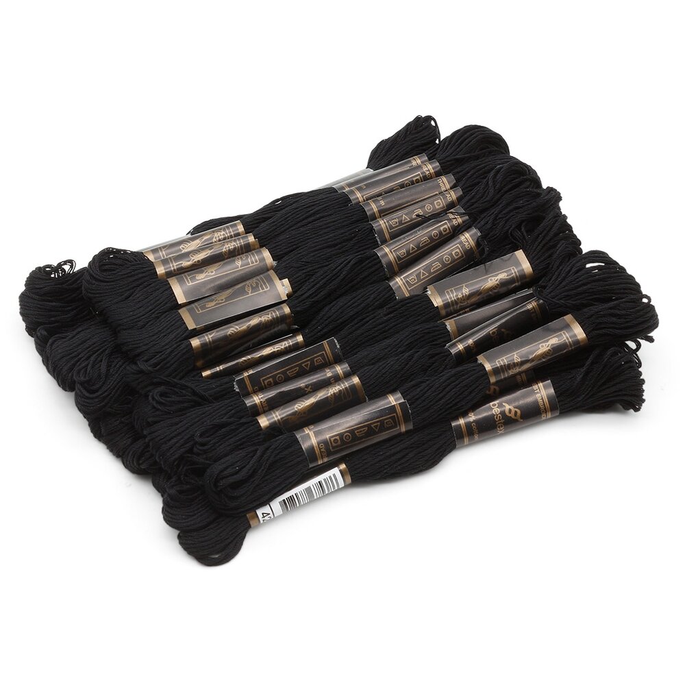 Нитки мулине с мягким блеском из мерсеризованного хлопка. Тонкие, износостойкие, равномерные по всей длине. При вышивании образуются аккуратные стежки. Продаются в упаковках по 24 шт. В ассортименте 393 основных цвета и 40 меланжевых цветов. Материал: 100% хлопок. Длина одной намотки: 8 м. Цена за 24 шт