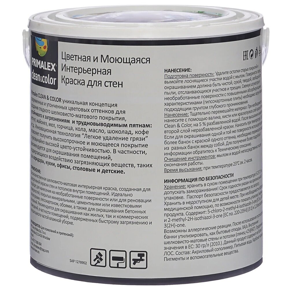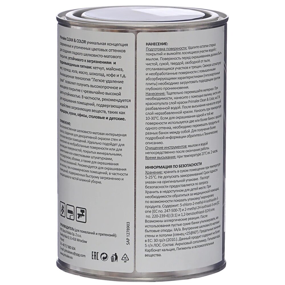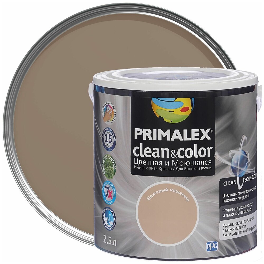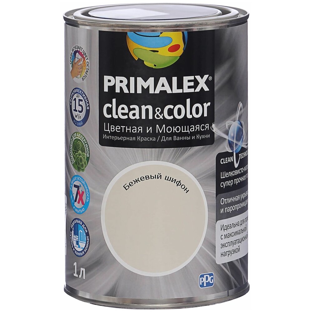 Краска акриловая PRIMALEX Clean&Color влагостойкая моющаяся матовая бежевый шифон 1 л