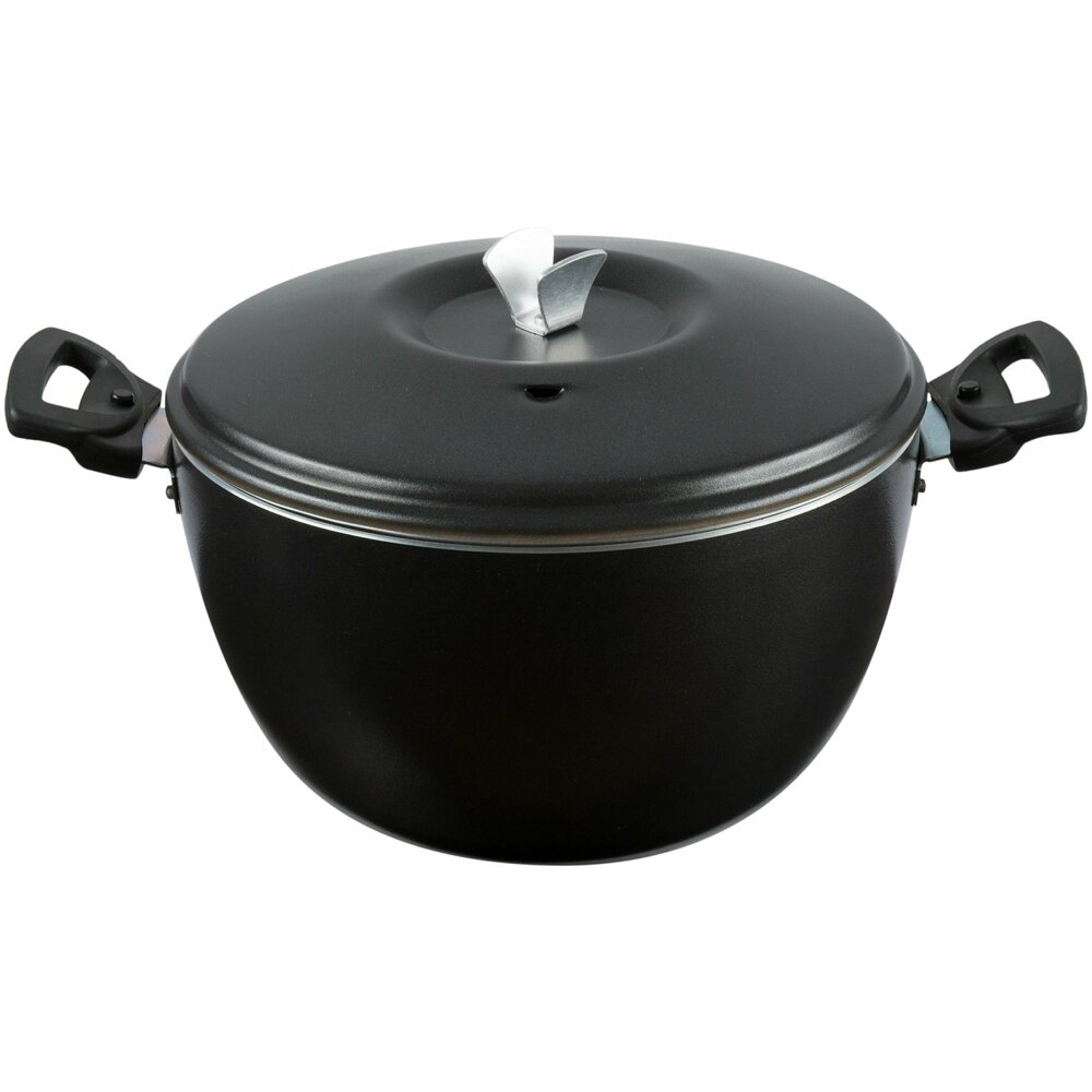 Кастрюля-казан объемом 5 литров со стеклянной крышкой – удобная и многофункциональная посуда с антипригарным покрытием для повседневных и праздничных блюд, интенсивного использования на плите любого типа. Практичная кастрюля-казан изготовлена из штампованного пищевого алюминия толщиной 3 мм. Прочные стенки и рифленое дно с антипригарным покрытием TeflonTM Classic превосходно защищают еду от пригорания, а рельефные «соты» отводят излишки жира и масла. Равномерный и быстрый нагрев, длительное удержание тепла внутри казана под плотной крышкой создают условия для бережной термической обработки продуктов, сохранения натурального сока и полезных свойств при минимальном использовании масла. Кастрюля-казан идеально подходит для приготовления оригинальных супов, тушения и запекания мясных, рыбных и сложносоставных блюд, в том числе национальной кухни. Крепкие бакелитовые ручки легко выдерживают большой вес казана.