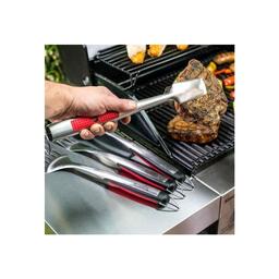 Классический набор из 4-х инструментов с удобной прорезиненной ручкой. Включает в себя лопатку, щипцы, силиконовую кисточку и вилку для мяса.