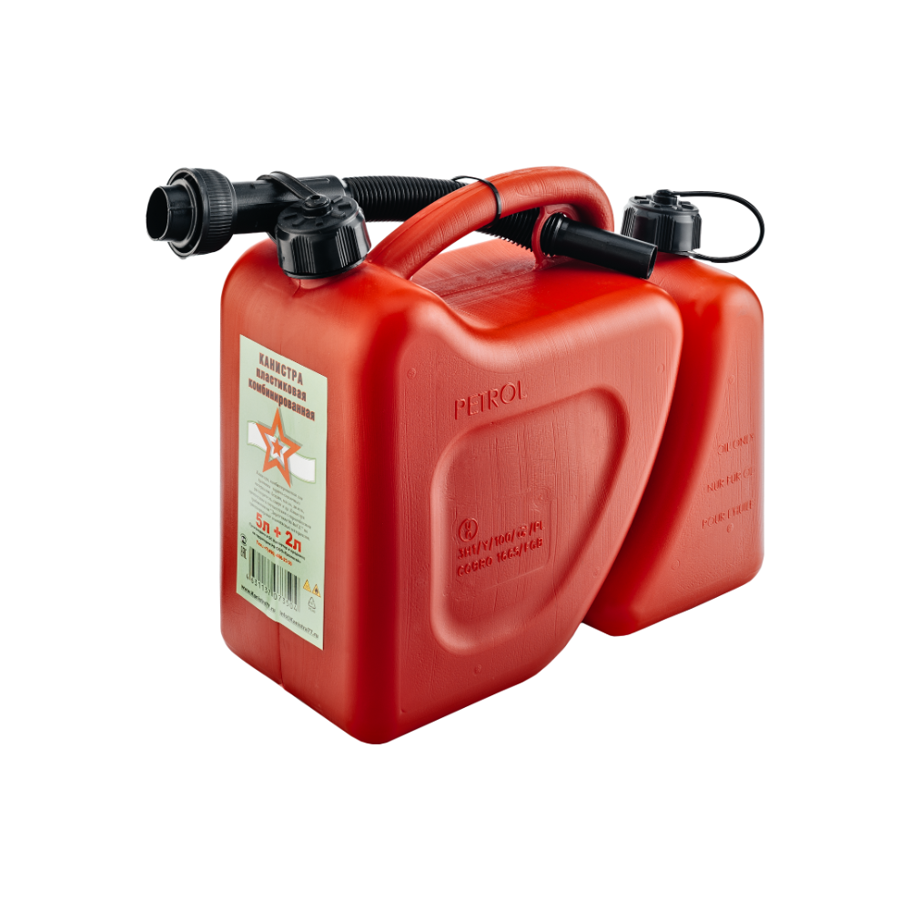 Канистра снабжена гибким заливным устройством. Удобна для раздельного хранения и перевозки 2-х видов топлива.Достоинства: наличие двух секций для хранения, долговечность, 100% герметичность, прочность, наличие заливного устройства, компактность.Двухсекционная канистра идеально подходит для владельцев любой садовой техники или бензоинструмента, при заправке которых необходимо добавление моторного масла в бензин.