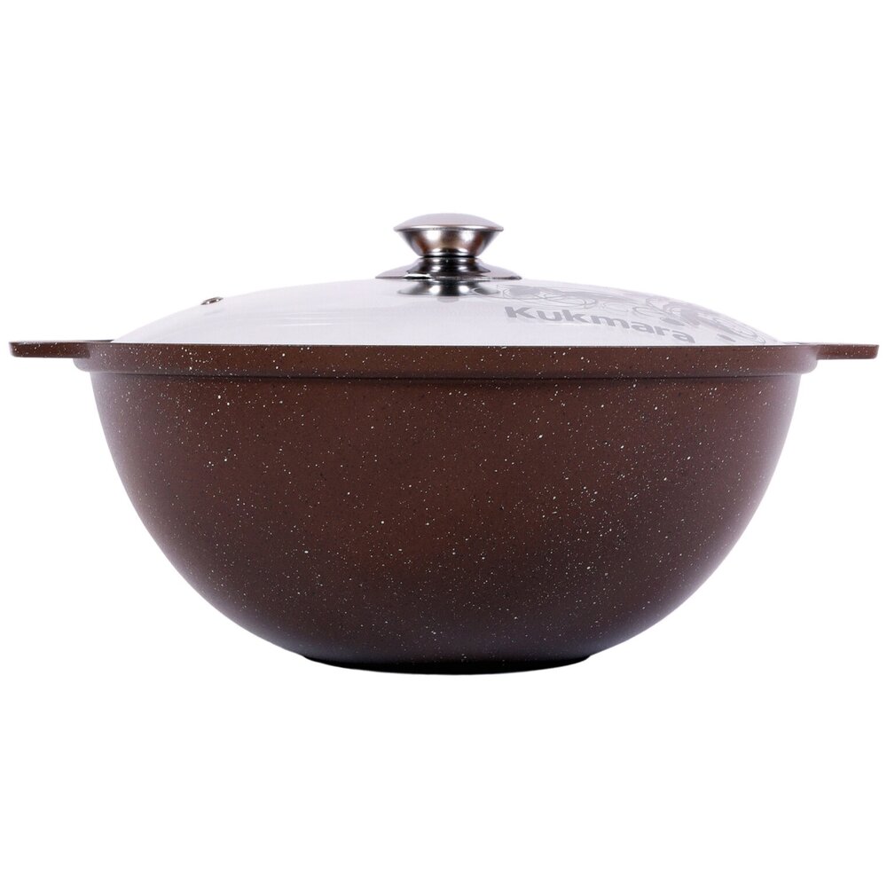 Казан для плова KUKMARA Кофейный мрамор литой 3,5 л со стеклянной крышкой