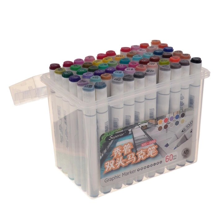 Набор маркеров профессиональных двусторонних 60 штук/60 цветов