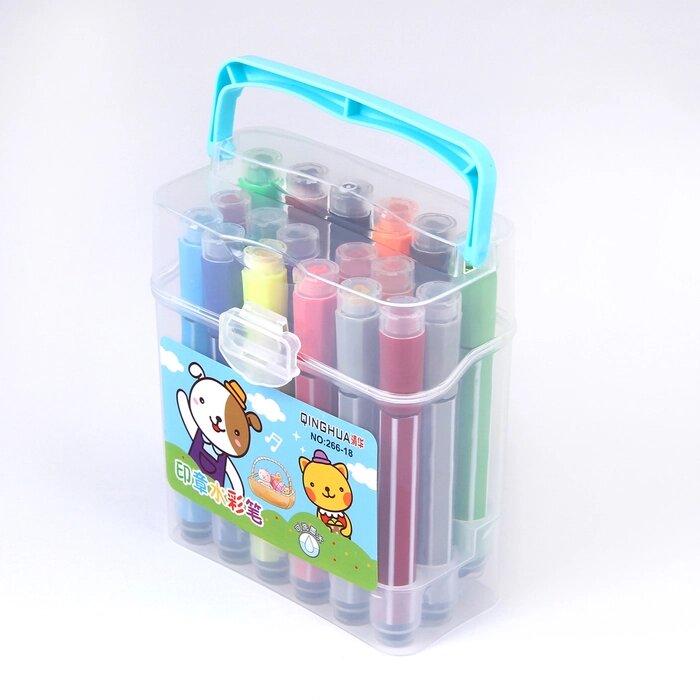 Фломастеры, 18 цветов, толстые, с печатью, вентилируемый колпачок, МИКС
