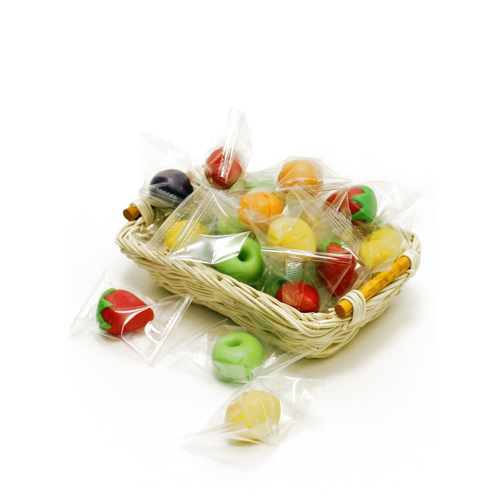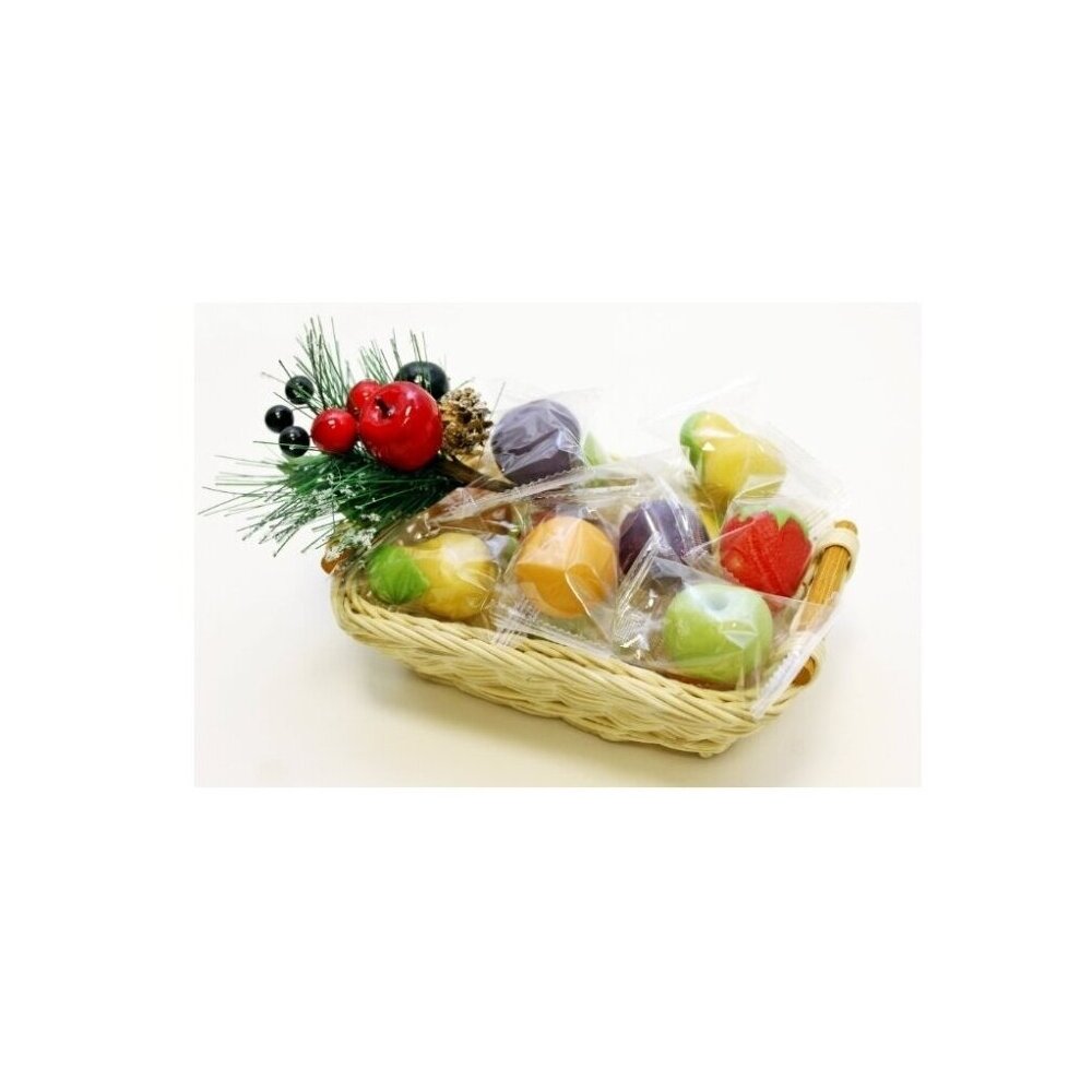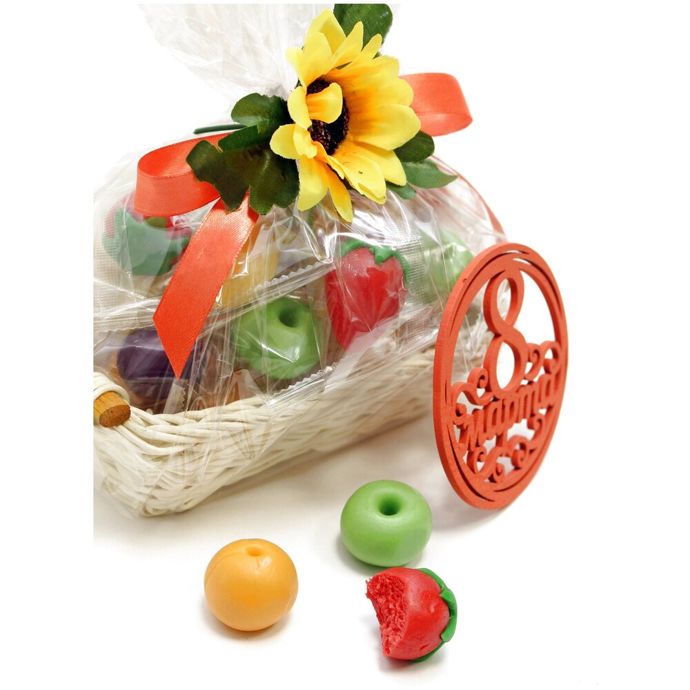 Корзинка с фруктами из марципана станет аппетитным украшением любого праздничного стола. Яблоко, клубника, лимон, абрикос, слива-превратятся в сладкий десерт к чаю и порадуют своим необычным вкусом миндаля с легкой ноткой амаретто как взрослых, так и детей. Корзинка выполнена из бамбука, и в ней помещается около 20 конфеток в индивидуальной упаковке. К Новому году набор упаковывается в прозрачную пленку и перевязывается ленточкой с новогодним украшением. Украшение может отличаться от изображения на фото.