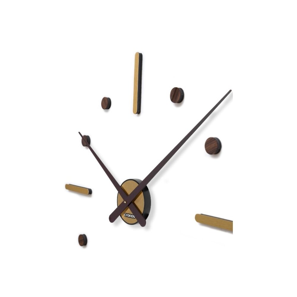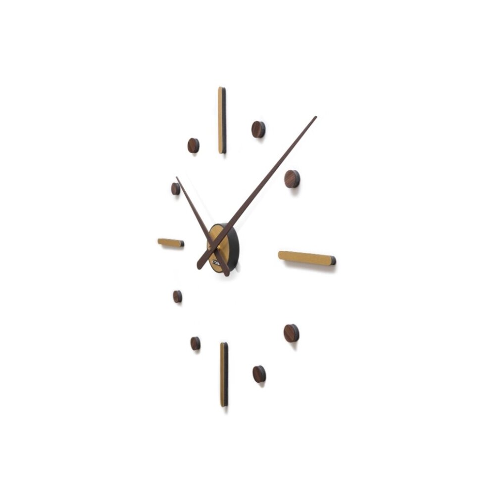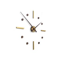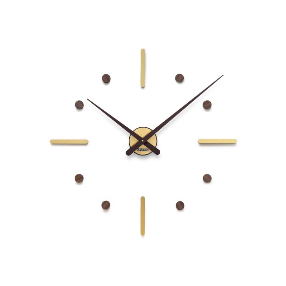 Дизайнерские настенные 3D часы в современном стиле. Диаметр часов на стене после установки 65 см. Минутная стрелка длинно 44 см, часовая 32 см. Элементы в данных часах выполнены из анодированного алюминия золотого цвета и HPL пластика с имитацией темного дерева. Чаша со стрелками изготовлена из натурального дерева. В часах используется качественный бесшумный часовой механизм плавного хода.