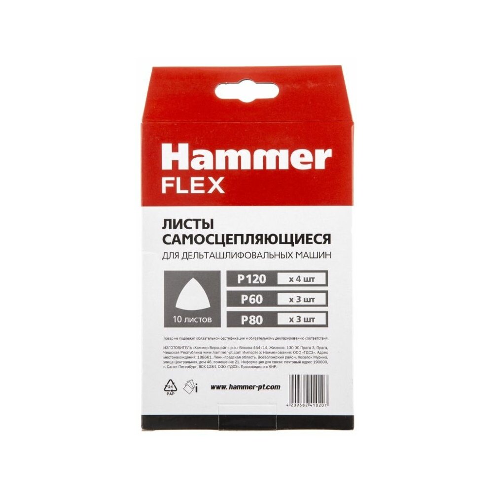 - Дополнительная информация листы самосцепляющиеся для дельташлифовальных машин Hammer: P60 3 шт, P80 3 шт, P120 4 шт