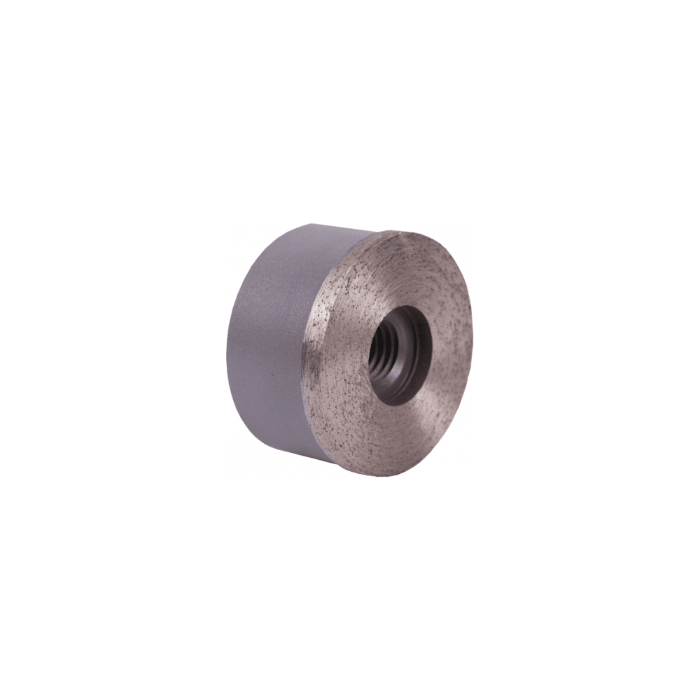 Гайка-фреза - это керамическая кромка превосходного качества за считанные секунды. Инновационный запатентованный продукт. Гайка-фреза накручивается на шпиндель углошлифовальной машины, зажимая режущий алмазный диск вместо обычной гайки. Алмазоносный слой на торцевой поверхности гайки превращает ее в полноценную алмазную фрезу. Такая схема позволяет подшлифовать кромку керамической плитки сразу после резания. Это делает процесс невероятно удобным и производительным. Эффективно работает как с настенной керамической плиткой, так и с прочными керамогранитами. Фреза изготавливается в двух исполнениях: -с крупным зерном 70/80 – для чернового шлифования, съёма большого объема материала. -с зерном 100/120 для тонких доводочных работ. Применяется на углошлифовальных машинах 125 с частотой вращения 11000 об/мин без охлаждения. Гайка-фреза имеет посадочную резьбу М14 для завинчивания на штоке УШМ. Алмазоносный слой имеет заходную фаску для плавного врезания в материал.