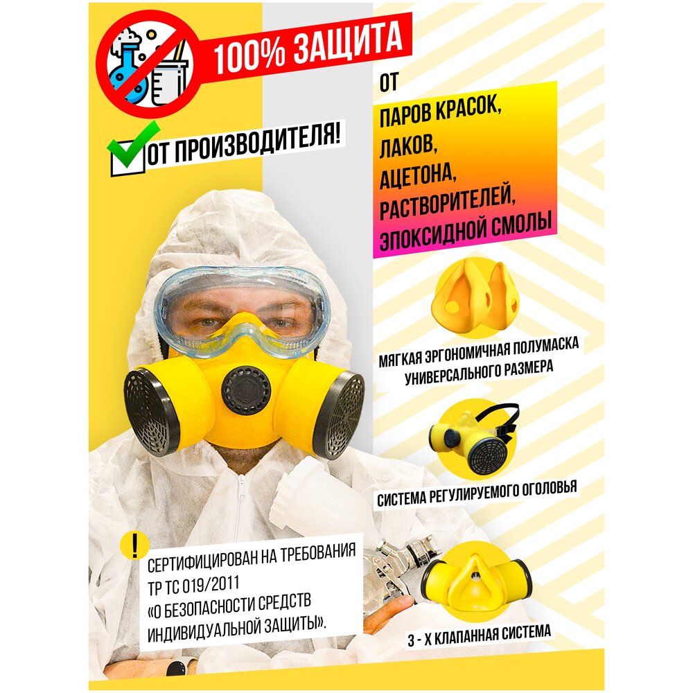 Респиратор противогазоэрозольный предназначен для защиты органов дыхания человека от мелкодисперсных аэрозолей различного происхождения (включая вирусы и микробы), вредных и токсиччных газо - и парообразных веществ, присутствующих в воздухе (краски, лаки, ацетон, органические растворители, бензин, керосин, дезинфицирующие растворы, инсектициды, пестициды, органические пропитки, эпоксидная смола).