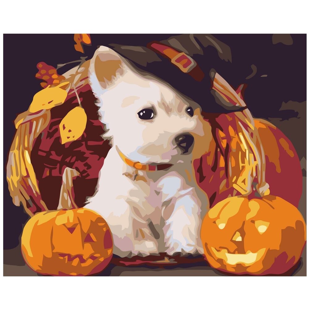 Щенок с тыквами Раскраска картина по номерам на холсте