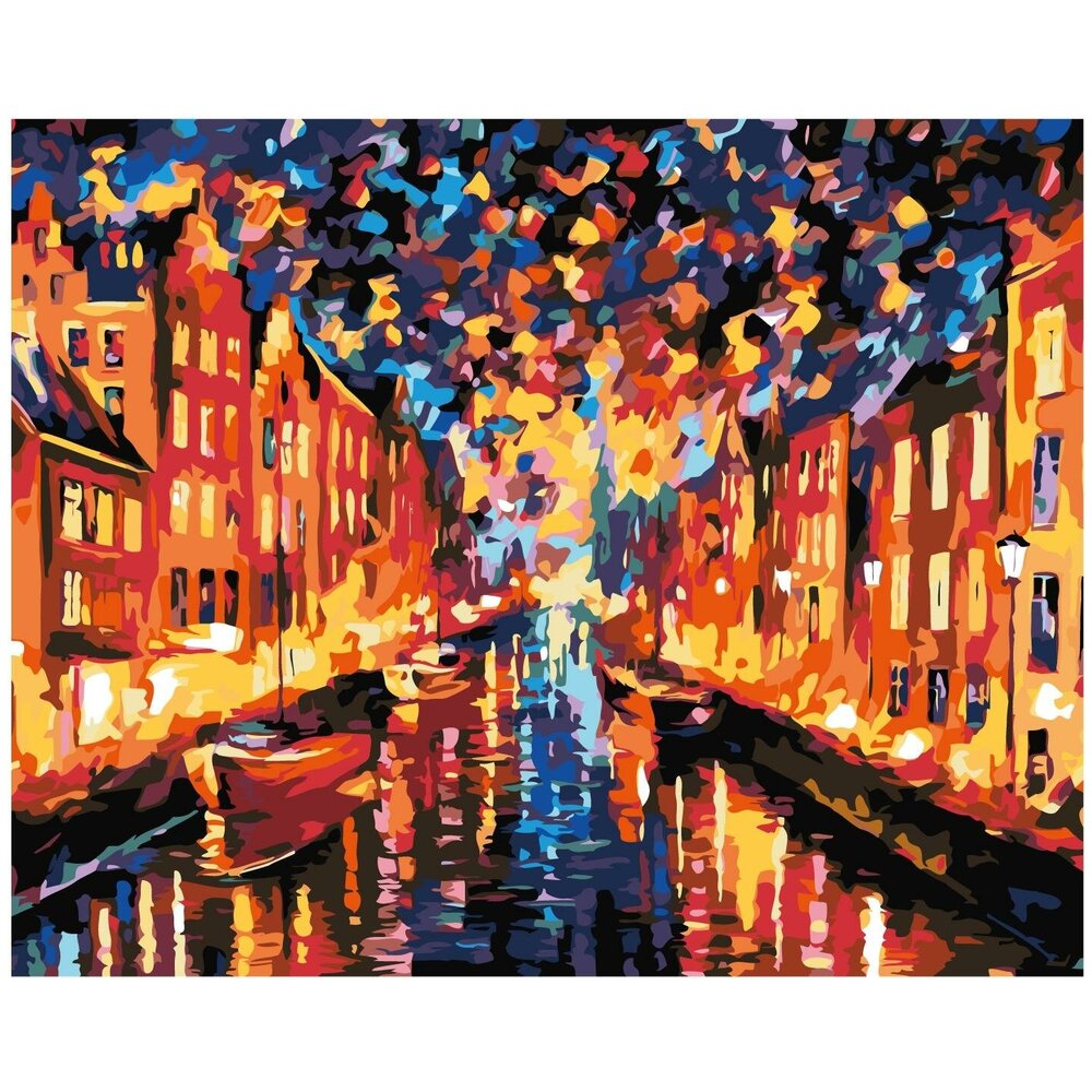 Картина по номерам Набережная Раскраска по номерам на холсте 40х50 LA07 содержит в наборе: холст на деревянной рамке, с нанесенными контурами рисунка; пронумерованные акриловые краски, не требующие смешивания; кисти.