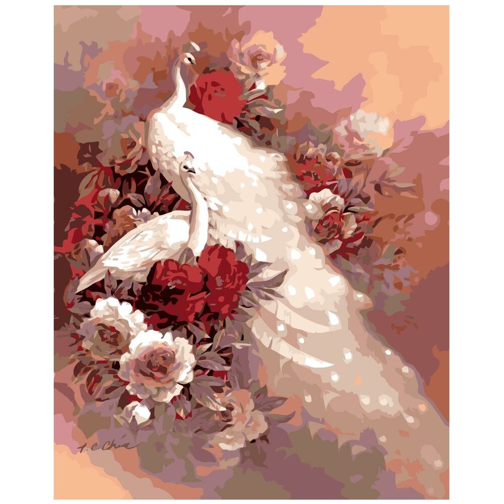 Белые павлины Раскраска по номерам на холсте Живопись по номерам