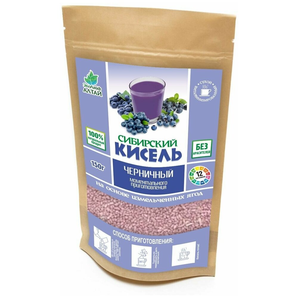 Сибирский кисель Черничный на основе измельченной ягоды,150 г.