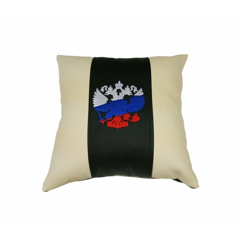 Подушка декоративная Auto Premium "Герб триколор", цвет: черный, бежевый