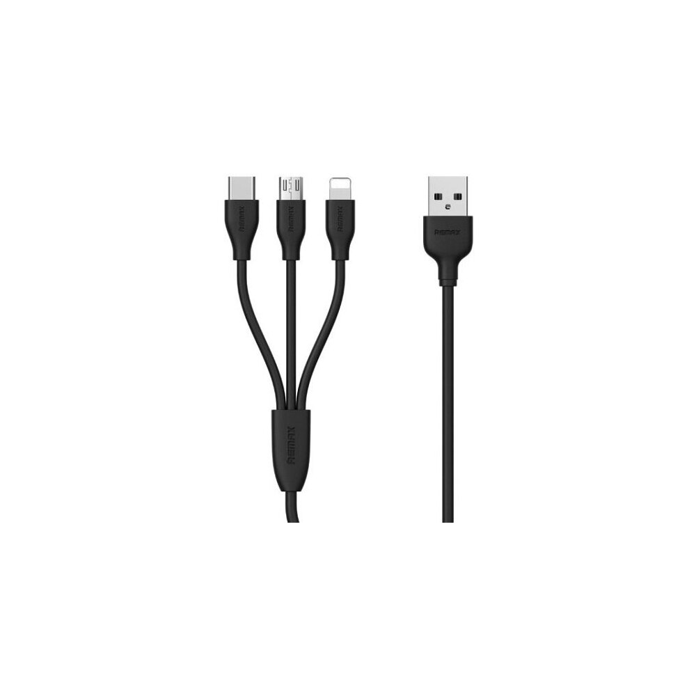 REMAX SUDA USB кабель 1 m 3 in 1 Lightning + USB Type-C + micro USB black