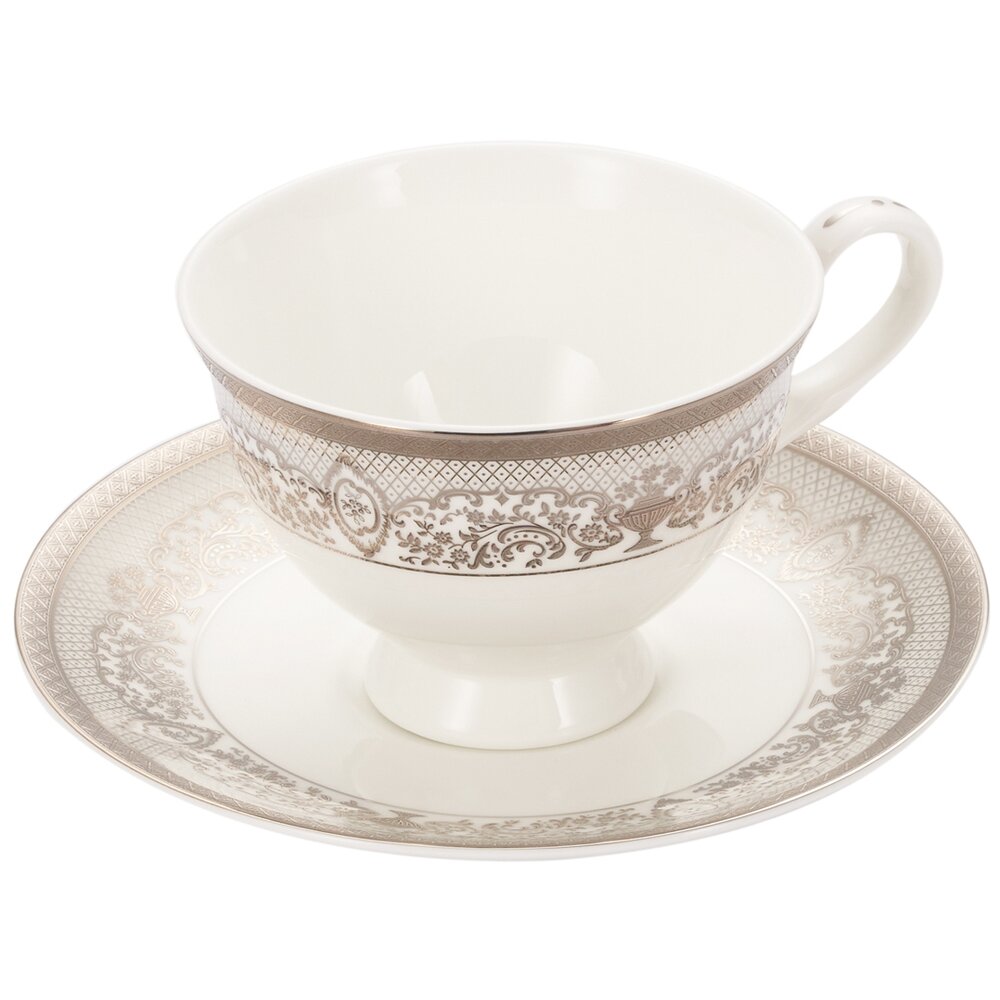 40989 GIPFEL Сервиз чайный ARGENTO на 6 персон из 15 предметов: чашка 200мл, 6шт., блюдце 16см, 6шт., чайник заварочный, 1200мл, 1шт., молочник, 1 шт., сахарница, 1 шт. Цвет: белый с серебристым кантом. Материал: премиальный фарфор.