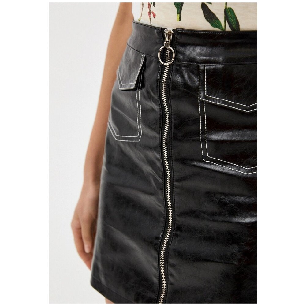 ADANIA - мини-юбка из черной экокожи с карманами и молнией-застежкой на фасаде. Стильная и удобная модель для повседневного использования, комбинируемая с любым верхом и любой обувью casual-категории.,ADANIA - мини-юбка из черной экокожи с карманами и молнией-застежкой на фасаде. Стильная и удобная модель для повседневного использования, комбинируемая с любым верхом и любой обувью casual-категории.