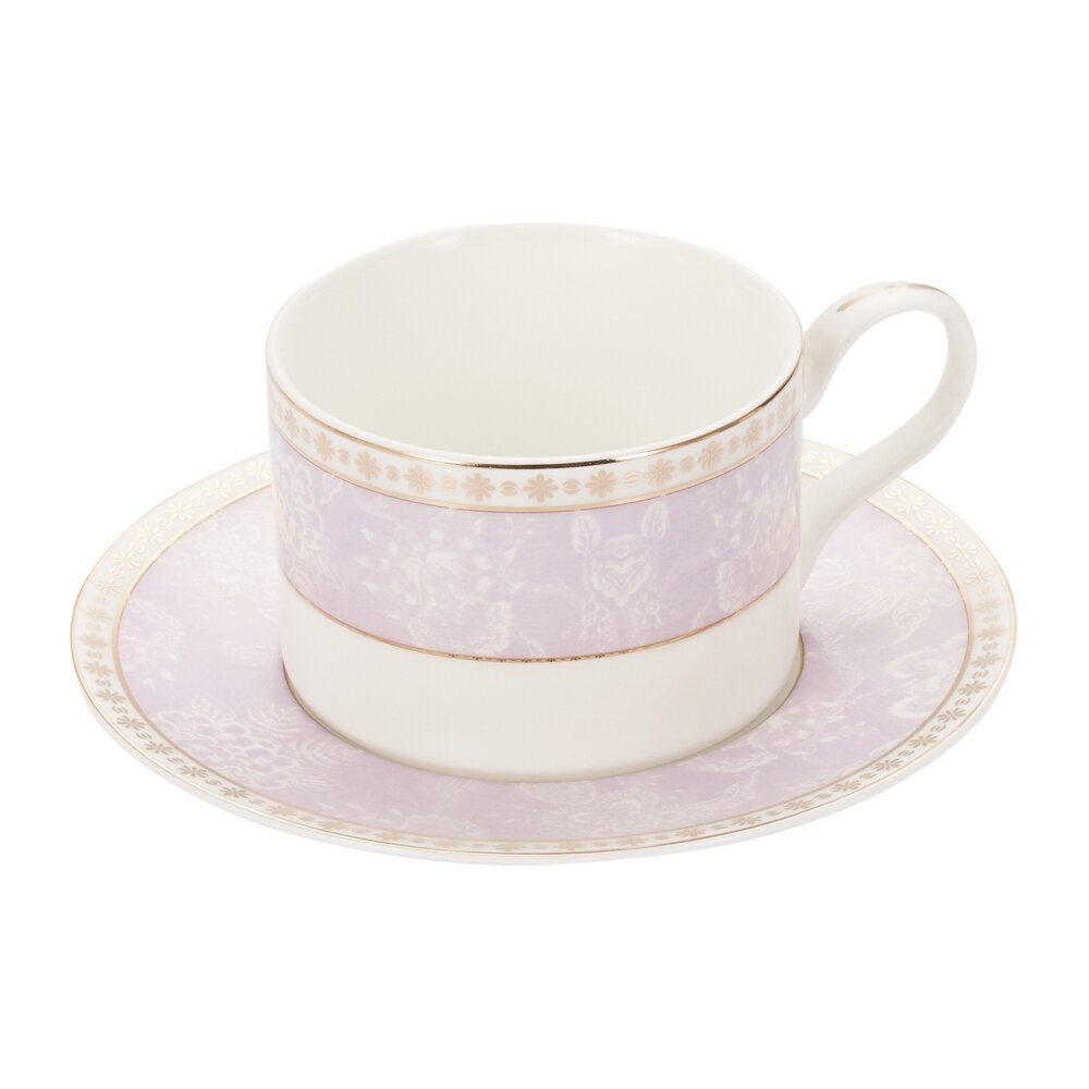40980 GIPFEL Сервиз чайный LILLA на 6 персон из 15 предметов: чашка 200мл, 6шт., блюдце 16см, 6шт., чайник заварочный, 1200мл, 1шт., молочник, 1 шт., сахарница 400мл, 1 шт. Цвет: белый с сиреневым кантом. Материал: премиальный фарфор.