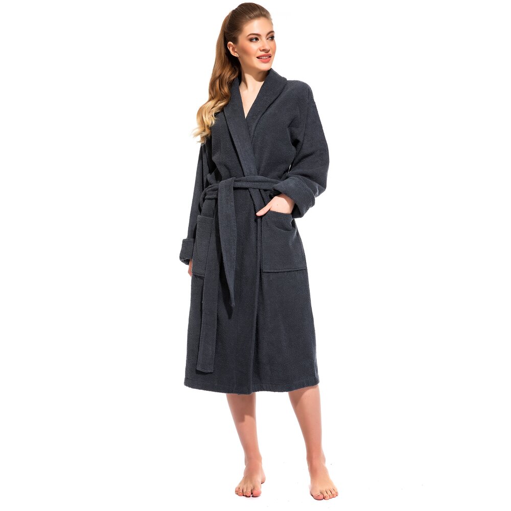 Женский махровый халат Grey Queen (E 305) размер XL (54-56), темно-серый