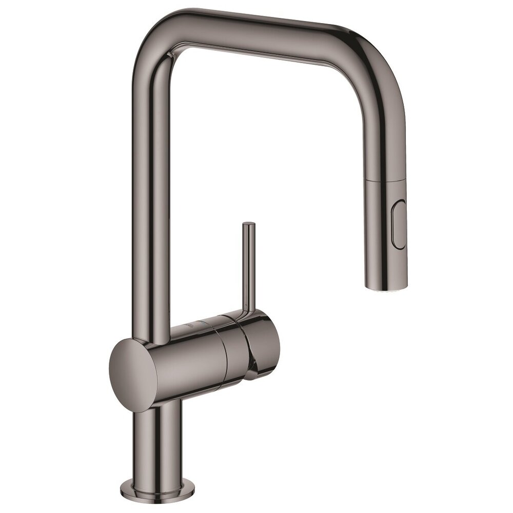Смеситель для кухни GROHE Minta U-излив монтаж на одно отверстие GROHE StarLight хромированная поверхность GROHE SilkMove керамический картридж Ø 46 мм GROHE EasyDock Легкое вытягивание и возврат на место выдвижного излива выдвижная лейка Dual переключатель: ламинарный режим струи/душевой режим струи SpeedClean регулировка расхода воды поворотный трубкообразный излив радиус поворота 360° встроенный обратный клапан с защитой от обратного потока гибкая подводка система быстрого монтажа минимальное давление 1,0 бар