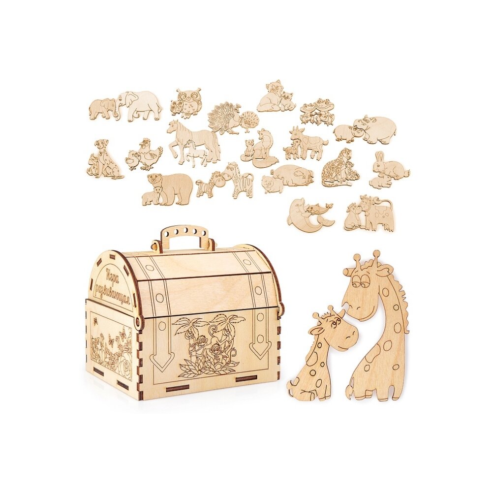 Пазл деревянный Ань-Янь в сундучке "Мама и Малыш" 20 пар (40 животных, гравировка) (ПСД032)