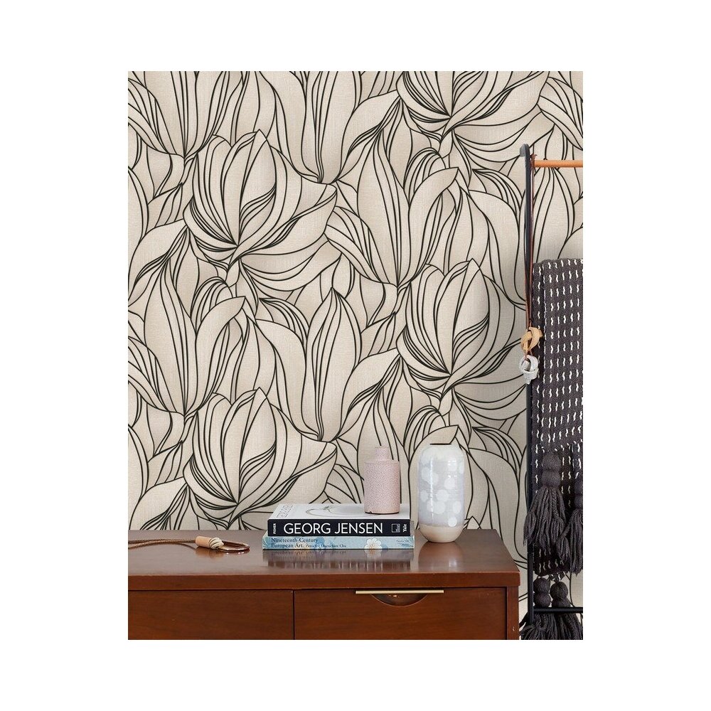 Обои 7119-17 Euro Decor Tulipe. Россия Покрытие: Винил горячего тиснения Основа: Флизелин Цвет: Бежевый Чёрный Рисунок: Орнамент Цветы Абстрактный рисунок Крупный рисунок Линии Текстура Узоры Стиль: Модерн Современный Модный Ширина (М): 1.06 Длина(М): 10