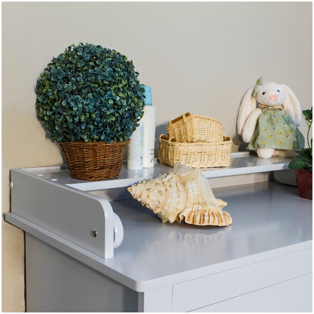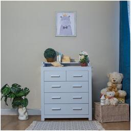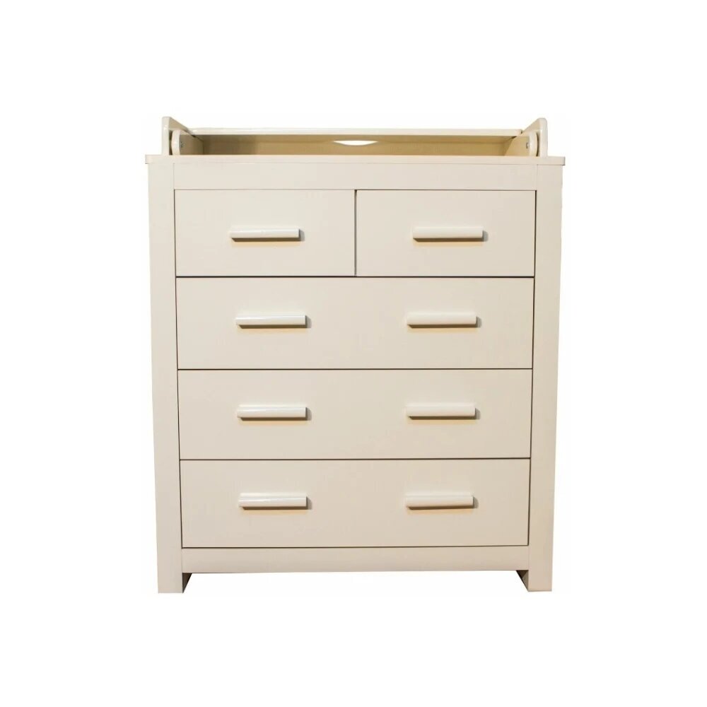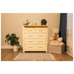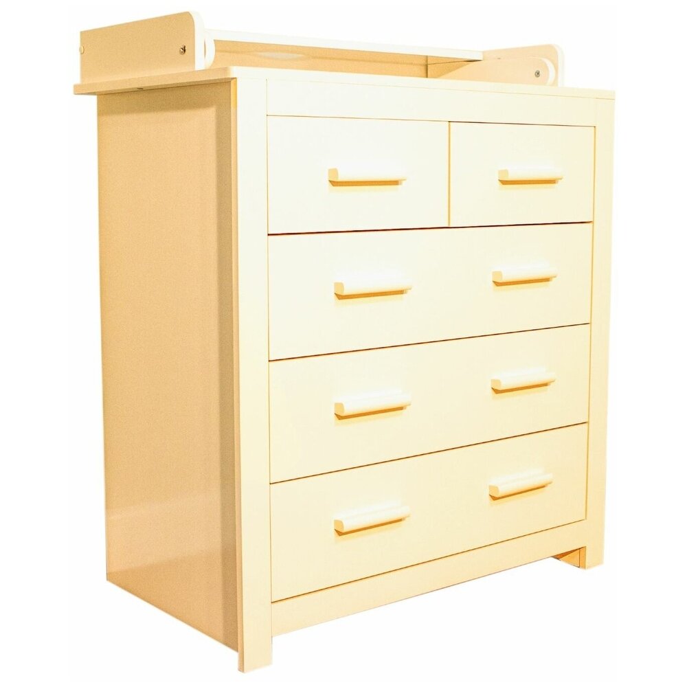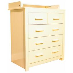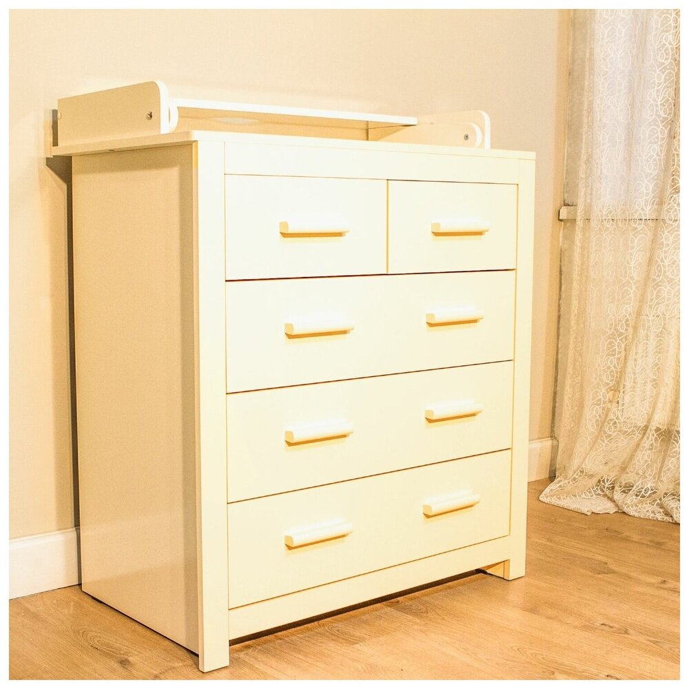 Практичный и невероятно удобный комод поможет вам в уходе за ребенком. Широкий комод оснащен откидной полкой, что обеспечивает безопасное пеленание малыша. В комплекте имеется мягкий настил на пеленальный столик. В дальнейшем откидную полку можно убрать.Размер пеленального столика (ШхД): 75х67 см.Нагрузка на пеленальный столик: 10 кг.В глубоких ящиках на шариковых направляющих немецкого производства Hettich, обеспечивающих бесшумное закрывание, поместятся все вещи ребенка. Комод сочетает в себе превосходное качество и современный дизайн.Материалы: МДФ, ЛДСП. Ручки ящика из натуральной древесины 140х20х25 мм.
