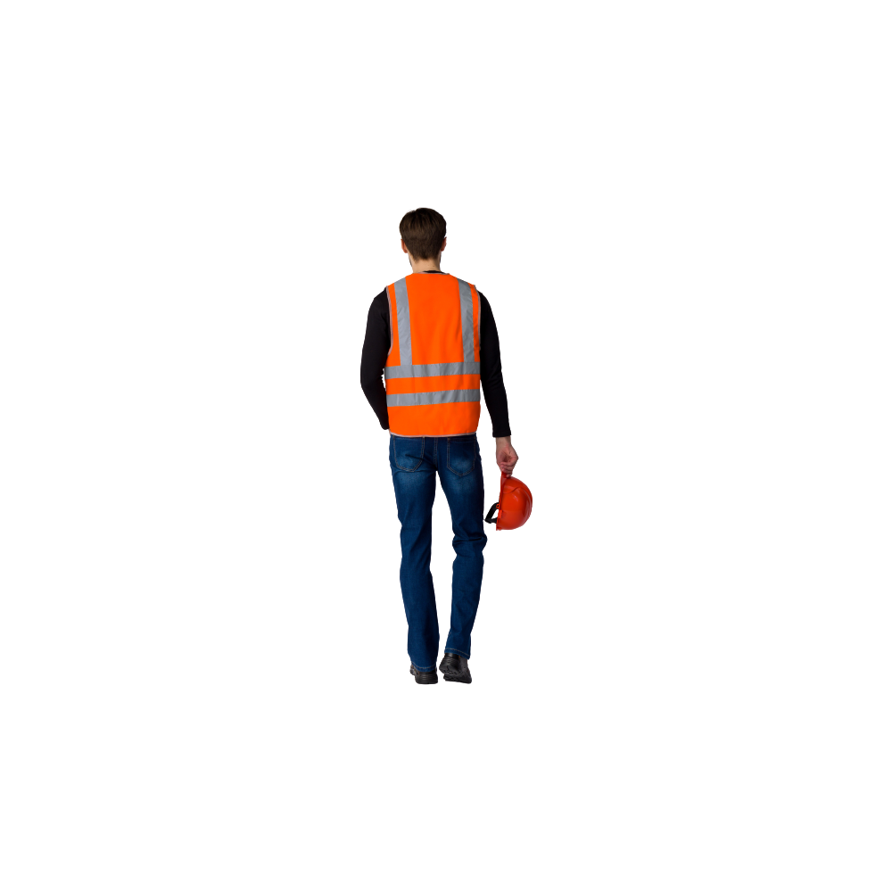 ЖИЛЕТ: Обеспечивает безопасность сотрудника в дневное и темное время суток. - ткань: 100% полиэфир, трикотажное переплетение «Рефлекс» - плотность: 100 гр/м2 - 2 горизонтальные СОП 50 мм - 2 вертикальные СОП 50 мм - застежка центральная: велькро - цвет: оранжевый - боковые карманы: нет