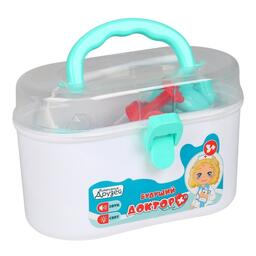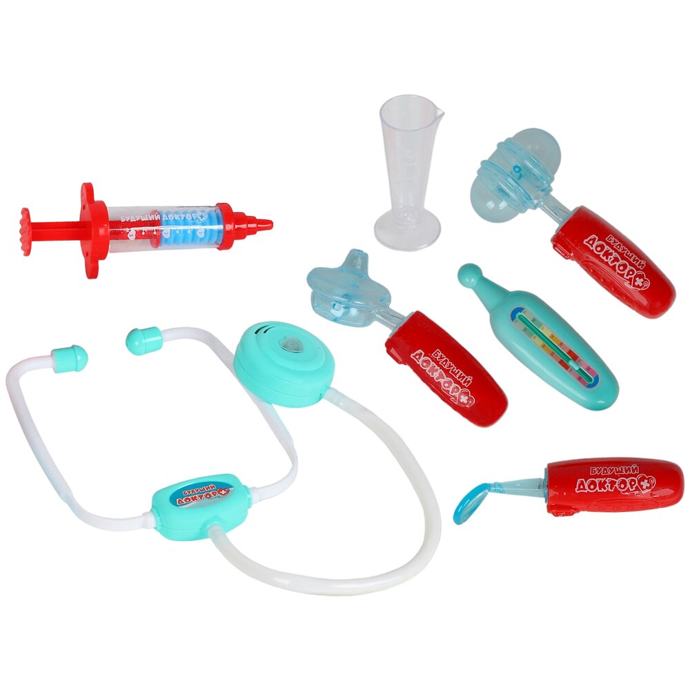 Игровой набор для детей ТМ "Компания Друзей", Серия "Будущий Доктор" в чемодане, игрушка для детей, развивающая игрушка, обучающая игрушка, на батарейках, 7 предметов: стетоскоп, градусник, шприц, молоточек и др., набор для игры в доктора, игрушечный набор, игрушечные медицинские инструменты. 19 х 11,2 х 12см