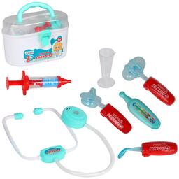 Если заболела любимая игрушка, нужно срочно принимать меры! Ведь здоровье -это самое главное! Детский набор доктора из серии "Будущий Доктор" торговой марки "Компания Друзей" станет отличным подарком для ребенка, мечтающего стать врачом. В нем есть всё для оказания первой медицинской помощи. Игровой набор надолго увлечет малыша, ведь с ним можно придумать множество интересных сюжетов. А еще такой набор позволит крохе не бояться врачей и медицинских инструментов. Игрушка идеально подойдет малышу благодаря ряду особенностей: • в набор входят 7 игрушечных медицинских инструментов: стетоскоп, градусник, шприц, молоточек и другие; • стетоскоп воспроизводит звуки стука сердца и мигает красным светом, часть инструментов также дополнены световыми эффектами, что делает игру еще интереснее и реалистичнее; • все предметы хорошо детализированы и похожи на настоящие инструменты; • элементы набора безопасны для игры и не имеют острых углов; • предметы складываются в удобном чемоданчике, который легко закрывается на защелку; • удобная ручка позволяет легко переносить чемоданчик и брать с собой в гости или в детский сад. Сюжетная игра поможет развить воображение, научит малыша ответственности, заботе о близких, а также познакомит с новыми профессиями. Комплект сделан из качественных материалов, полностью безопасен для детей, имеет необходимый сертификат и соответствует установленным требованиям. Характеристики: Возраст от 3 лет Функции: свет, звук Комплектация: чемодан, 7 предметов Материал: пластик Батарейки: 2 шт AG13, 2 шт AG10, входят в комплект Размер упаковки: 19 х 11,2 х 12см Упаковка: удобный чемоданчик с ручкой и защелкой