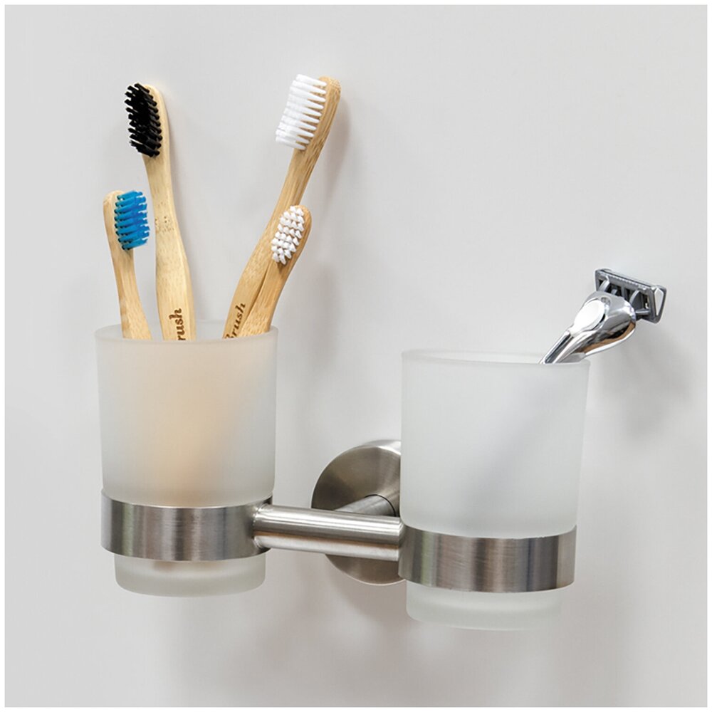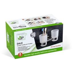 Wonder Worker DALE Стакан для зубных щеток двойной, L17.5xH11xD10.5 cm, высокого качества аксессуар для ванной комнаты Сильная фиксация на стене при помощи клея. Материал: нержавеющая сталь, ABS-пластик