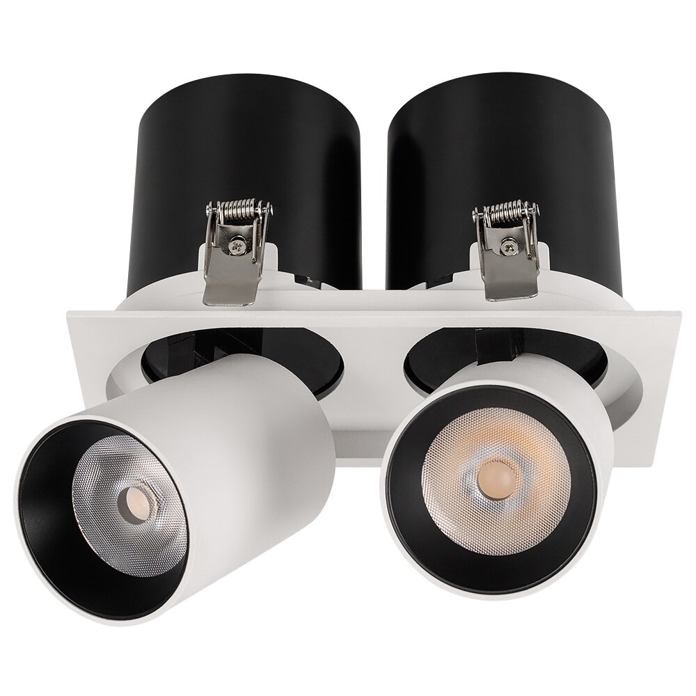 Встраиваемый поворотный выдвигающийся светильник для потолка. Светодиоды 2x10W, цвет БЕЛЫЙ ДНЕВНОЙ 4000K, св.поток 1900лм, угол 24°, RA>90. Корпус белый. Мощность 20Вт, питание AC220-240V. Размеры WxLxH 112x210x127мм. Установка в отверстие 100x195мм. Драйвера в комплекте (2 шт 30-48V 250mA).