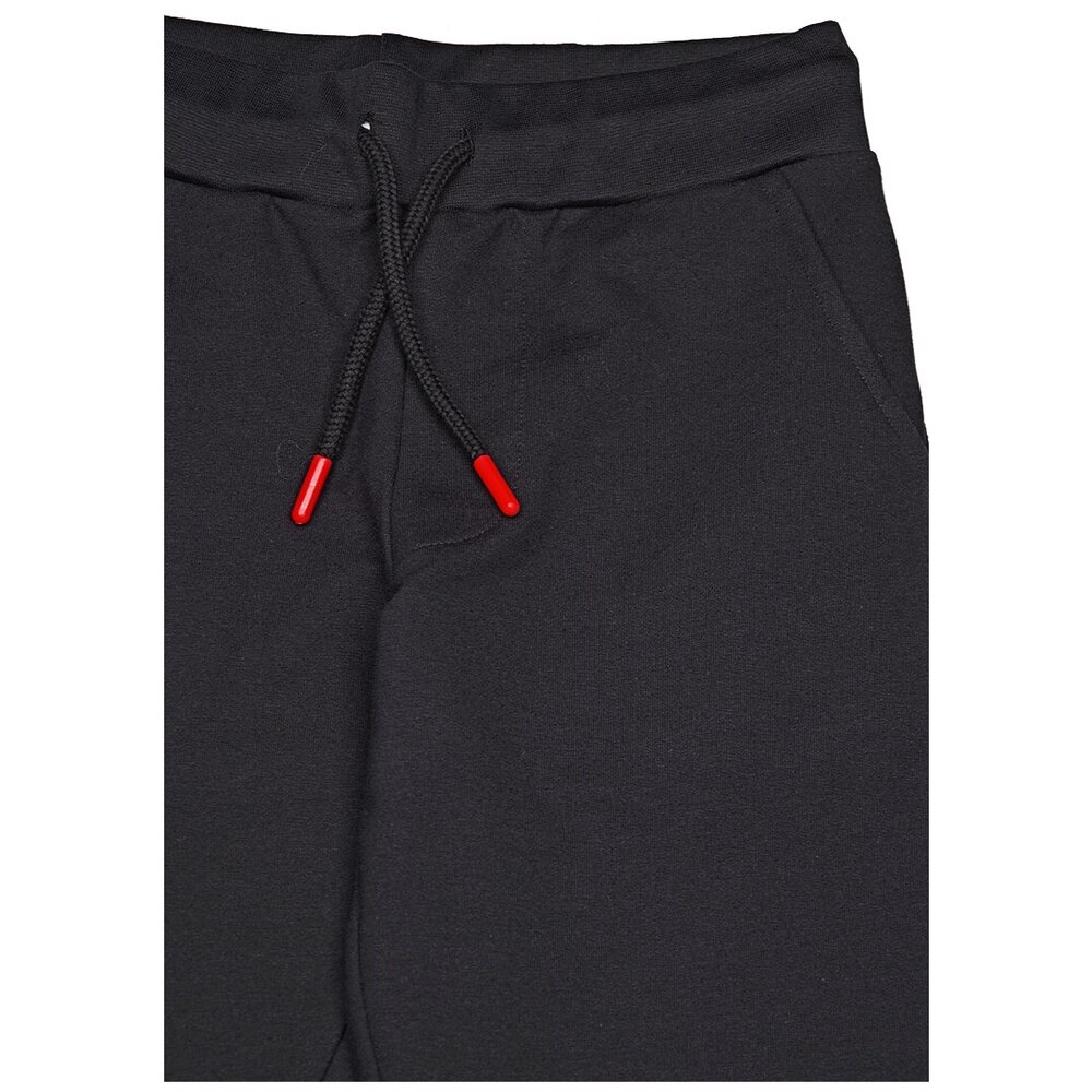 Спортивный костюм для мальчика из толстовки и однотонных брюк. Толстовка с капюшоном дополнена молнией и декорирована надписью логотипа бренда, функциональные карманы. Брюки-джоггеры на трикотажной резинке с утяжкой, два боковых и один накладной карман сзади, низ брючины на эластичной резинке.